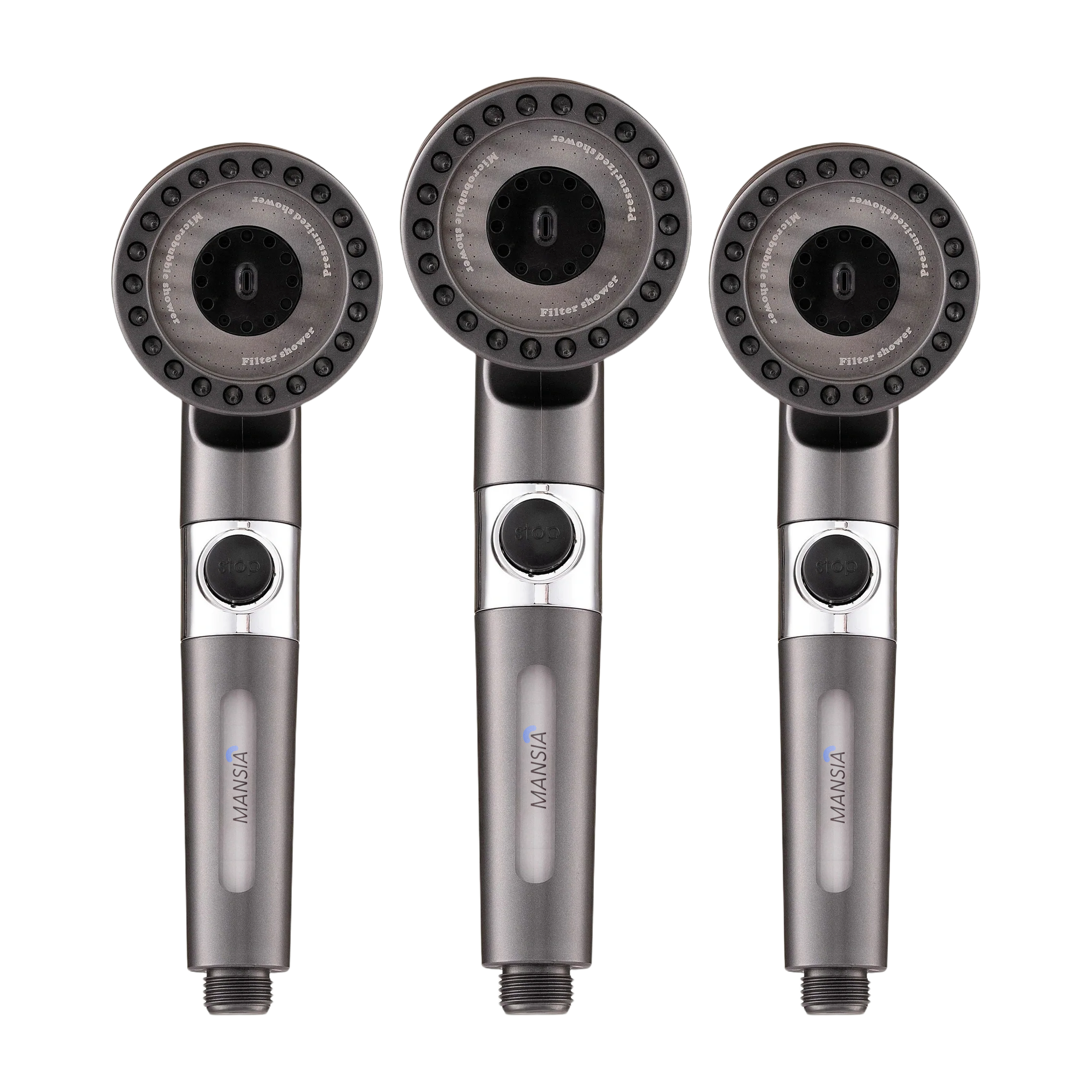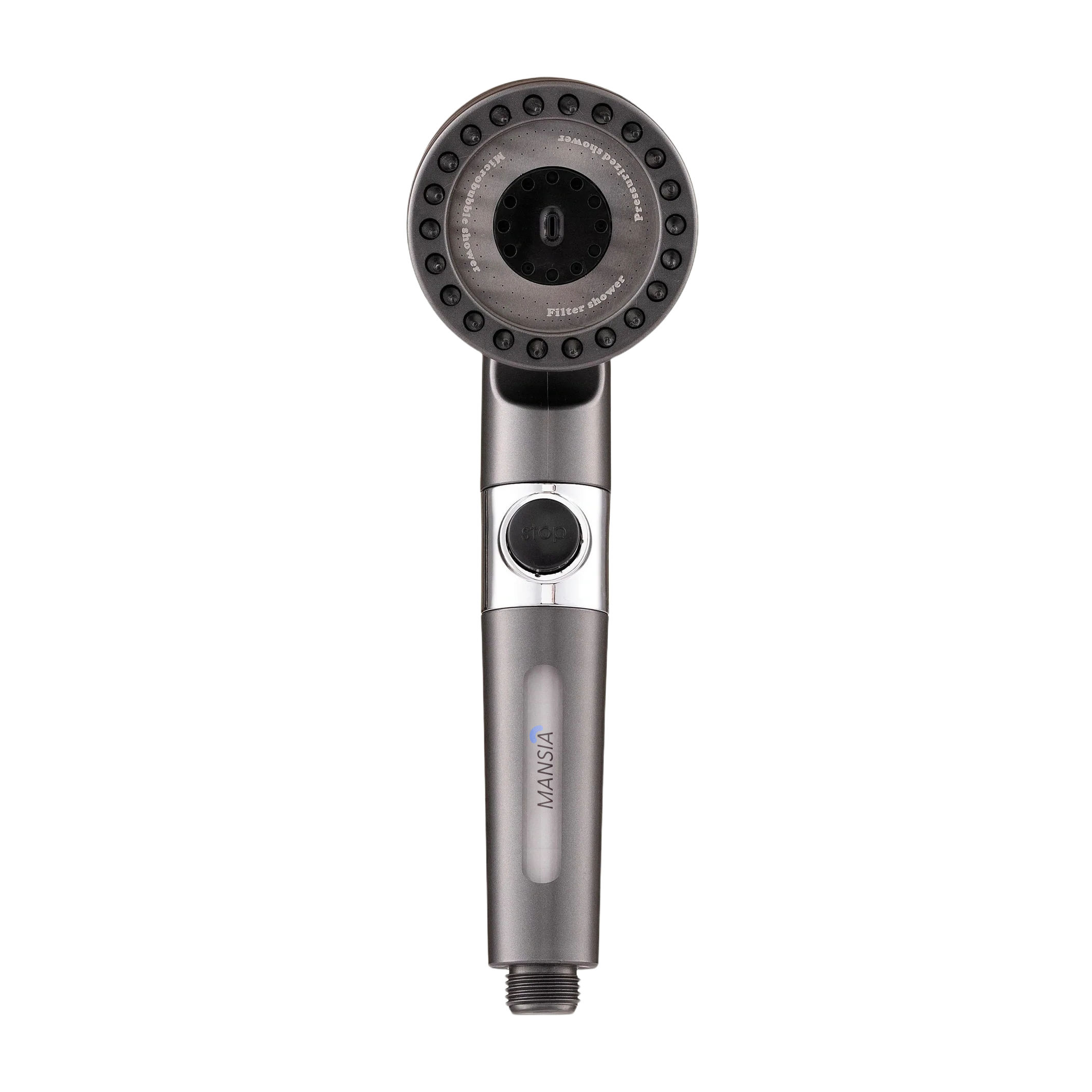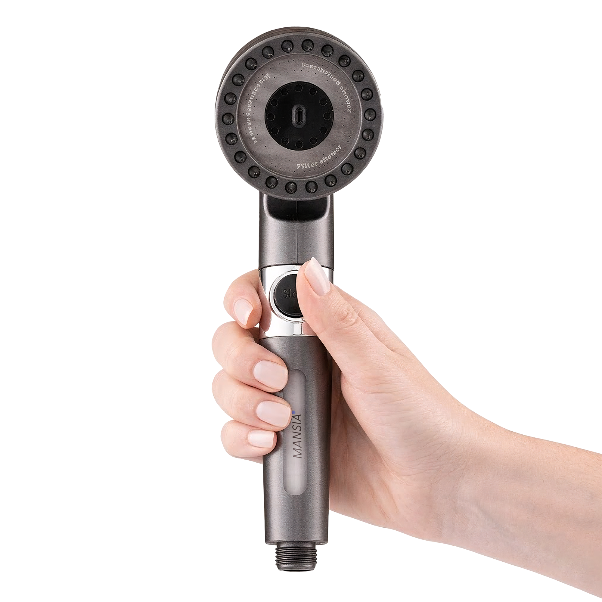 Mansia™ utilise une filtration en plusieurs étapes pour réduire le chlore, les métaux et les microparticules — pour une eau plus propre et plus sûre, douce pour la peau et les cheveux.