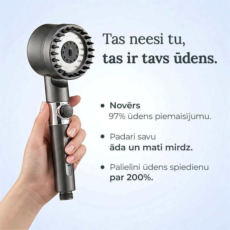 Tas attīra ūdeni no kaitīgām ķīmiskām vielām, palīdzot saglabāt ādu mitrinātu un veselīgu.”