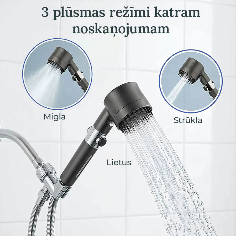 SHOWERELAX ir pirmais dušas uzgalis, kas likvidē līdz pat 96% ūdens piemaisījumu, atjaunojot ādas un matu dabisko mirdzumu jau 4 nedēļu laikā.