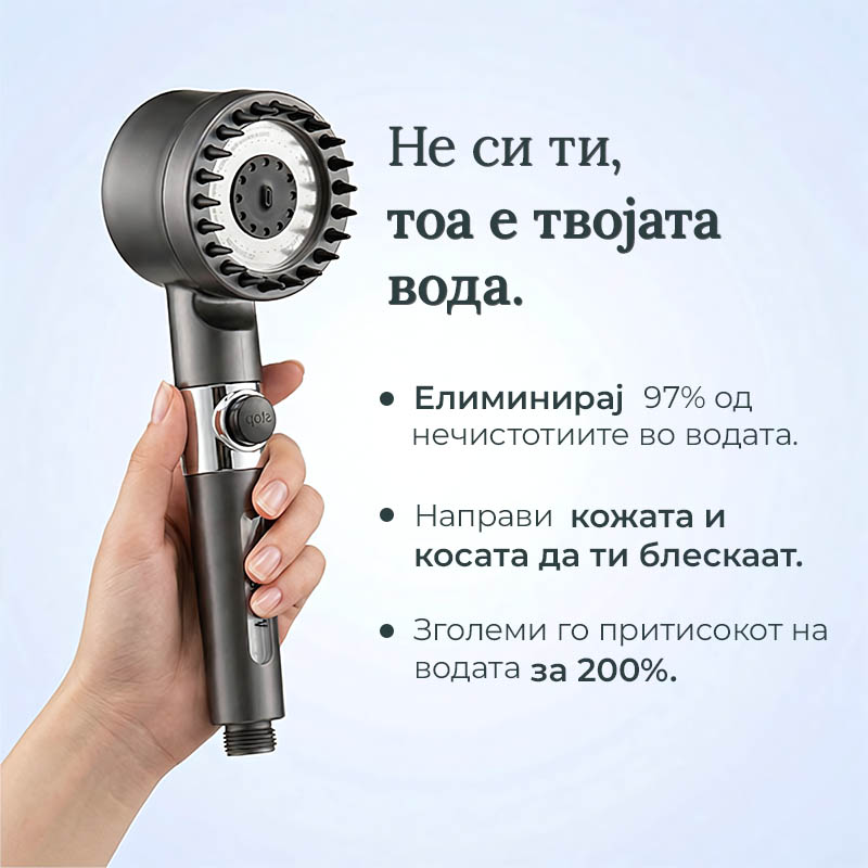 - Овој туш користиTri-Action технологија на филтрација, вклучувајќи обратна осмоза и тростепен процес на прочистување, за даелиминира до 99 % од штетните материи пред да ја допрат твојата кожа.